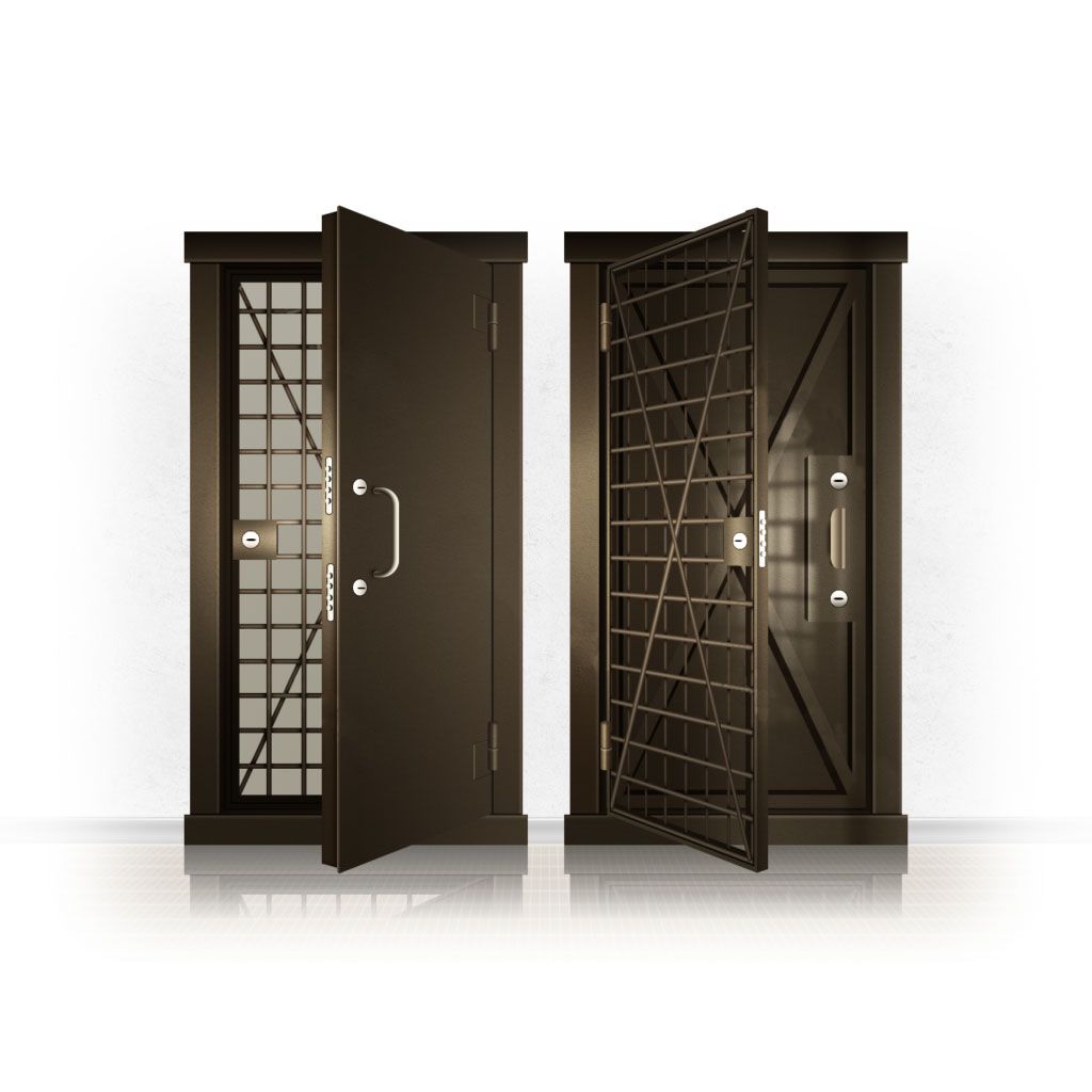 Металлические двери КХО и КХН представляют собой входные блоки, обладающие высоким уровнем взломостойкости и состоят из трех основных элементов: усиленного каркаса, сплошного металлического полотна и решетчатой двери. Дверной блок изготавливается из стального уголка 100*100 мм. Места крепления блока к стене цементируются и закрываются стальными наличниками шириной 40 мм. Крепеж заходит вглубь стены на 80 мм. В конструкции внешней створки монтируются ребра жесткости, для обшивки используется сталь толщиной не менее 3 мм. Внутренняя решетка изготавливается из прутка диаметром 16 мм. Размер ячеек решетки должен составлять не более 15 на 15 см. В точках пересечения прутья надежно приваривают друг к другу. В КХО и КХН необходимо поддерживать определенную температуру и влажность. Для этого внутреннее пространство глухой двери заполняется теплоизоляционным материалом, а по периметру двери приклеивается уплотнитель. Такие двери оборудуются замками с повышенным уровнем взломостойкости. Специализированные двери КХО и КХН в Барыше могут быть оснащены сигнализацией, в конструкции могут быть проушины для навесного замка и элементами для опечатывания. Если идет речь о двери в комнату хранения оружия, в створке оборудуется окно для выдачи оружия и спец. средств, которое накрывается стальной дверцей.
