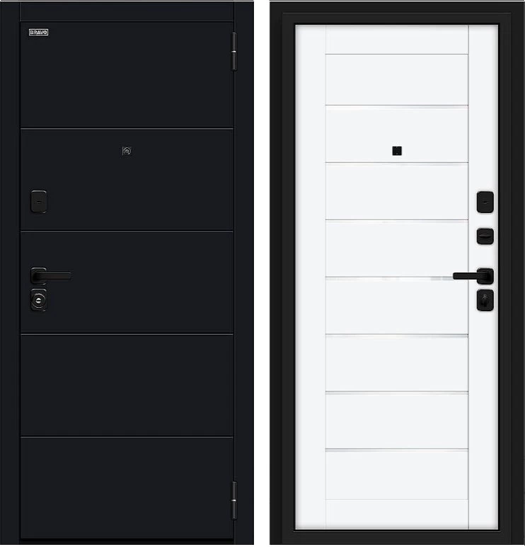 Надежная входная Дверь Браво Прайм/SBlack-Black Shell/White Silk премиум класса по цене 40 143 руб. Большая толщина стали защитит от проникновения в ваш дом, квартиру или коттедж. Используется очень качественная фурнитура: замки, цилиндры, ручки, защелки. Покрытие и отделка двери изготовлено под внимательным контролем производителя. Дверь имеет долгий срок службы и гарантию.