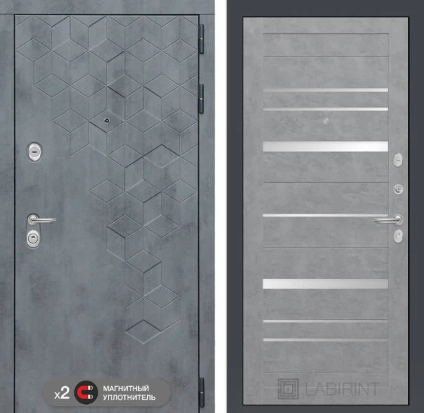 Дизайнерская входная Дверь Бетон класса Люкс с несколькими листами стали, звукоизоляцией и теплоизоляцией. Утепленный короб и полотно защитят от сквозняков и шумов. Модель не только надежная, комфортная, защищенная и высочайшего качества, но и очень красивая! Будет отлично сочетаться с интерьером дома, квартиры или офиса. Сейчас действует выгодное предложение по цене: 55 543 руб.